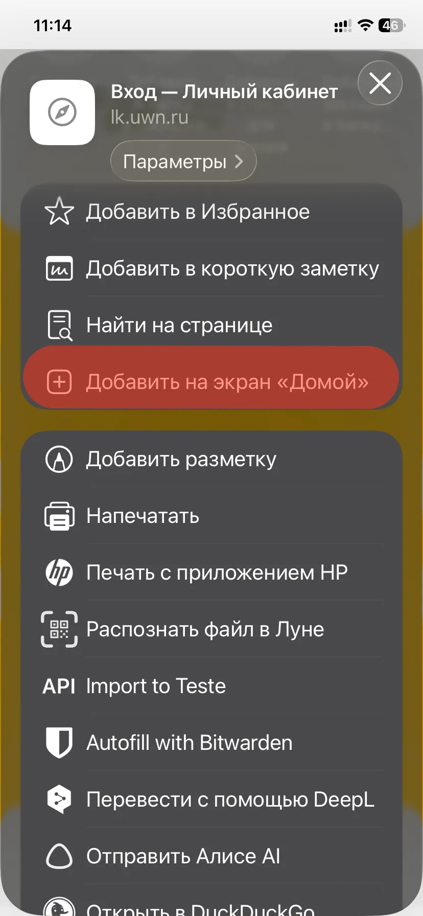 1. Открыть браузер Safari и в поисковой строке ввести адрес — lk.uwn.ru: